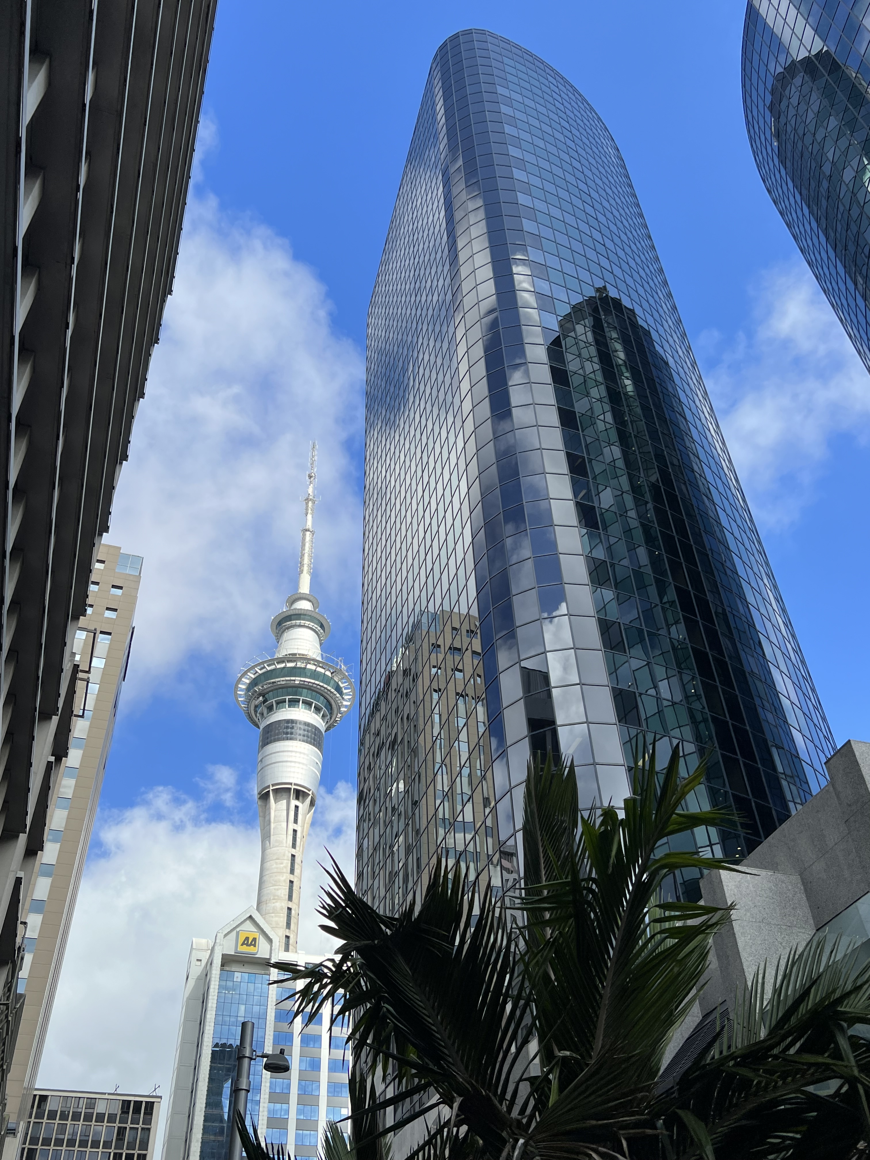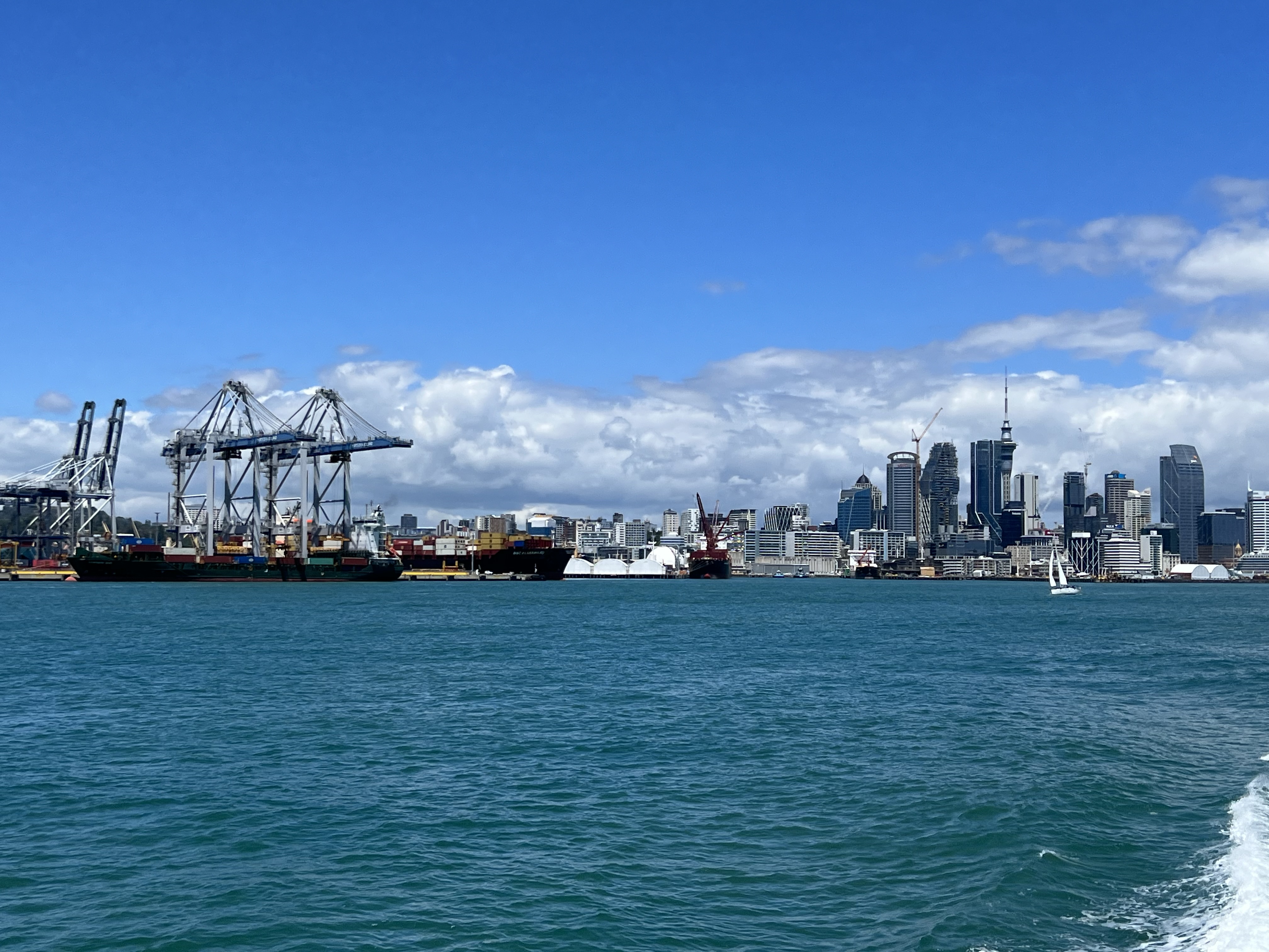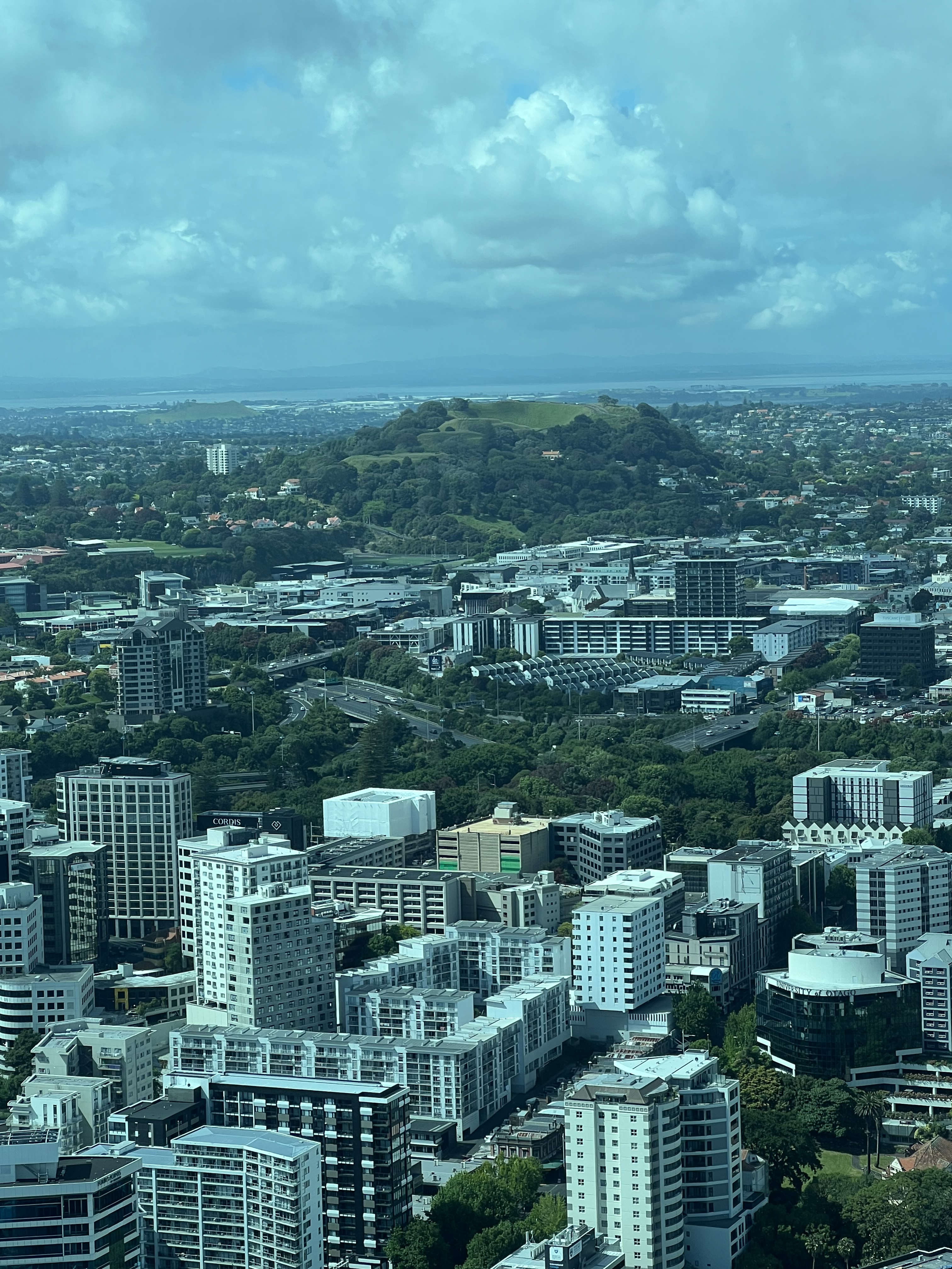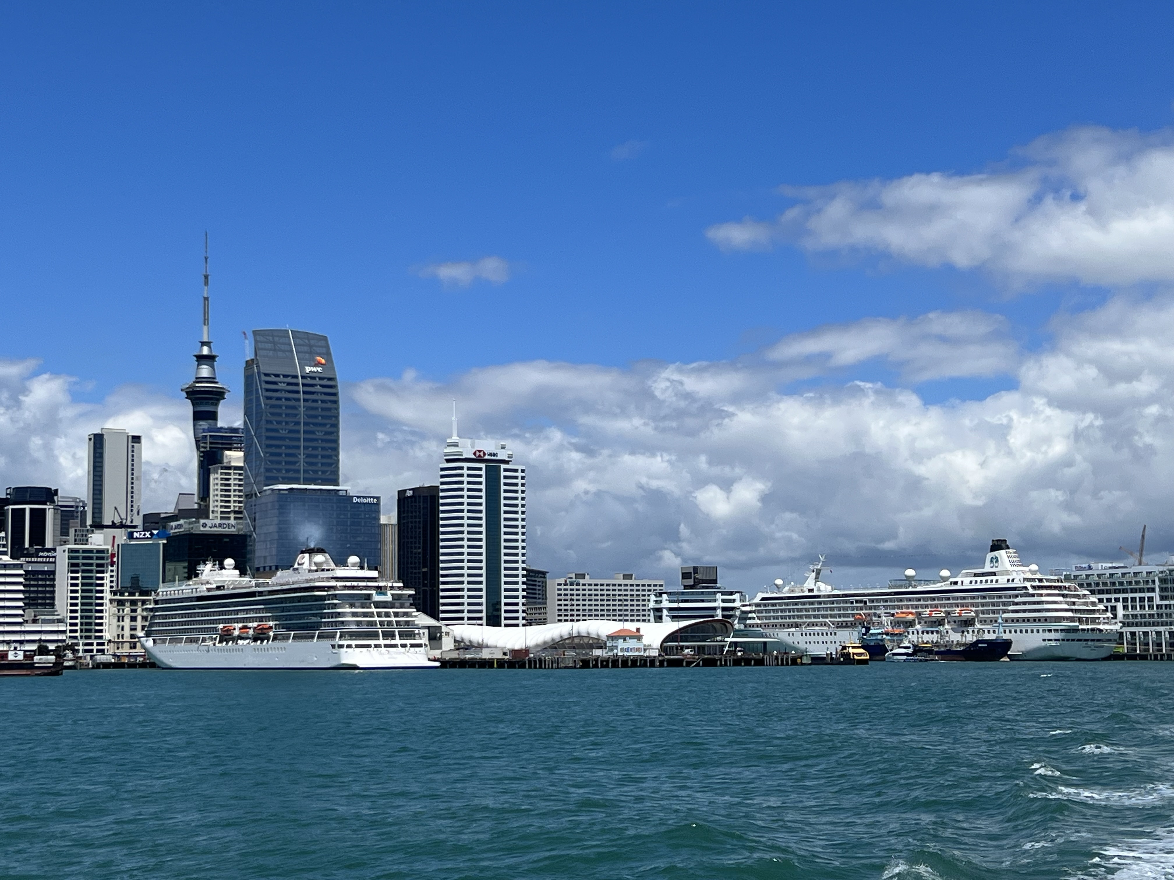 Um den Jetlag gar nicht erst aufkommen zu lassen, haben wir uns schon zeitig aufgemacht, „the city of sails“ zu erkunden. Nach einem gemütlichen Frühstück und einem Spaziergang durch das Hafenviertel, die Innenstadt mit vielen trendigen Cafés und die Queens Street mit ihren mehr oder weniger schicken Läden haben wir uns in luftiger Höhe von den zwei Aussichtsplattformen des Sky Towers einen ersten Überblick über die grösste Stadt Neuseelands verschafft. Der Skytower ist mit seinen 328m sogar noch etwas höher als der Eiffelturm und so konstruiert, dass er auch ein Erdbeben der Stärke 8 aushalten würde. Nicht dass du das erleben wolltest, wenn du da oben stehst. Der Blick durch die Glasböden auf die 60 Stockwerke tiefer liegende Strasse war mir schon Nervenkitzel genug… Auf der anschliessenden kurzen Überfahrt mit der Fähre nach Devonport, einem hübschen Vorort von Auckland, konnten wir die Skyline, den Hafen mit seinen riesigen Hafenkranen und die grossen Kreuzfahrtschiffe, die aktuell hier Halt machen, auch noch vom Wasser aus bestaunen. Der Bummel entlang der hübschen Strandpromenade von Devonport trägt das seine dazu bei, dass wir am späteren Nachmittag mit bereits 18‘000 Schritten und entsprechend etwas müden Beinen eine kurze Siesta einlegen und diese für den ersten Blog-Eintrag aus Kiwiland nutzen.