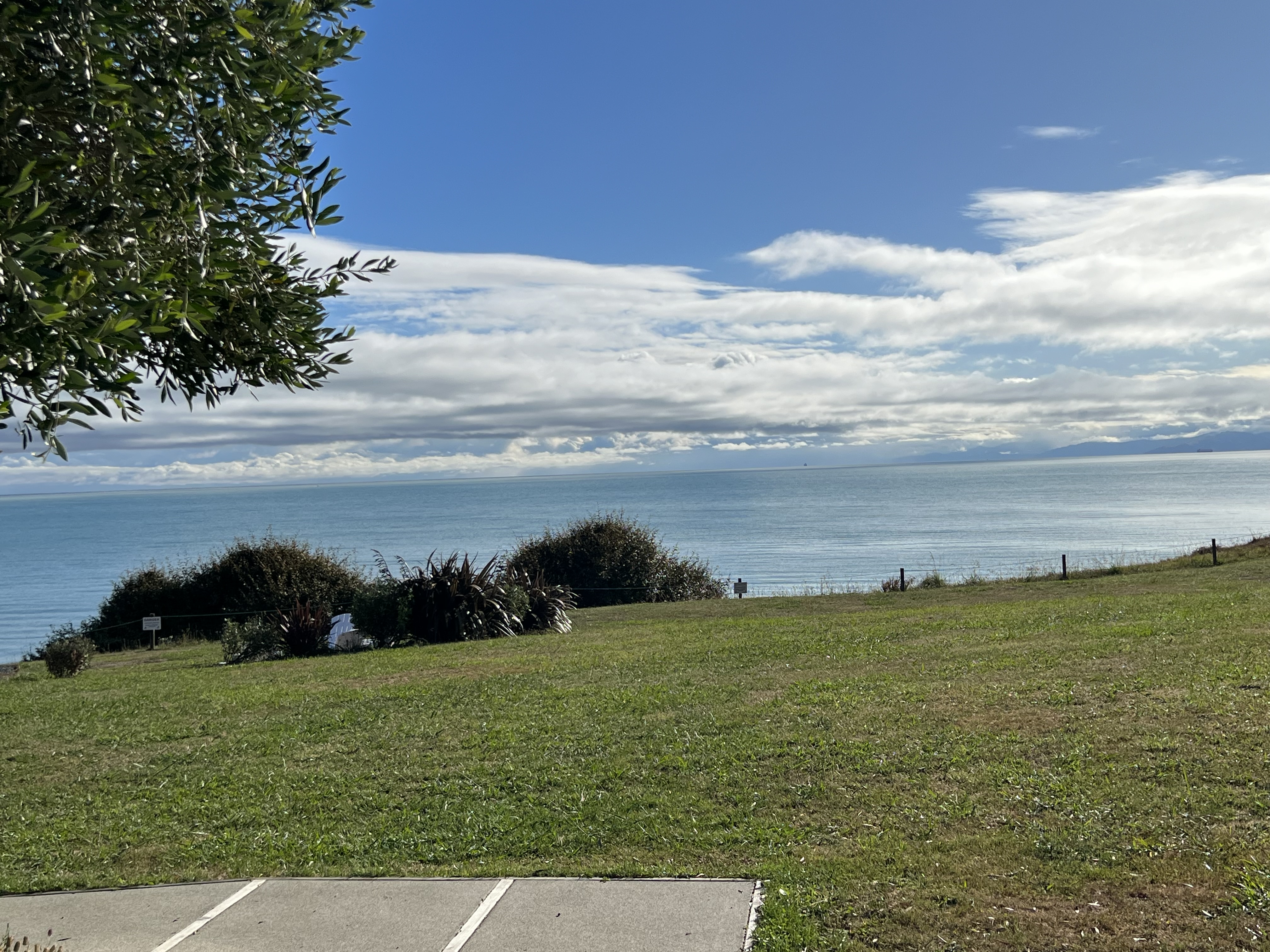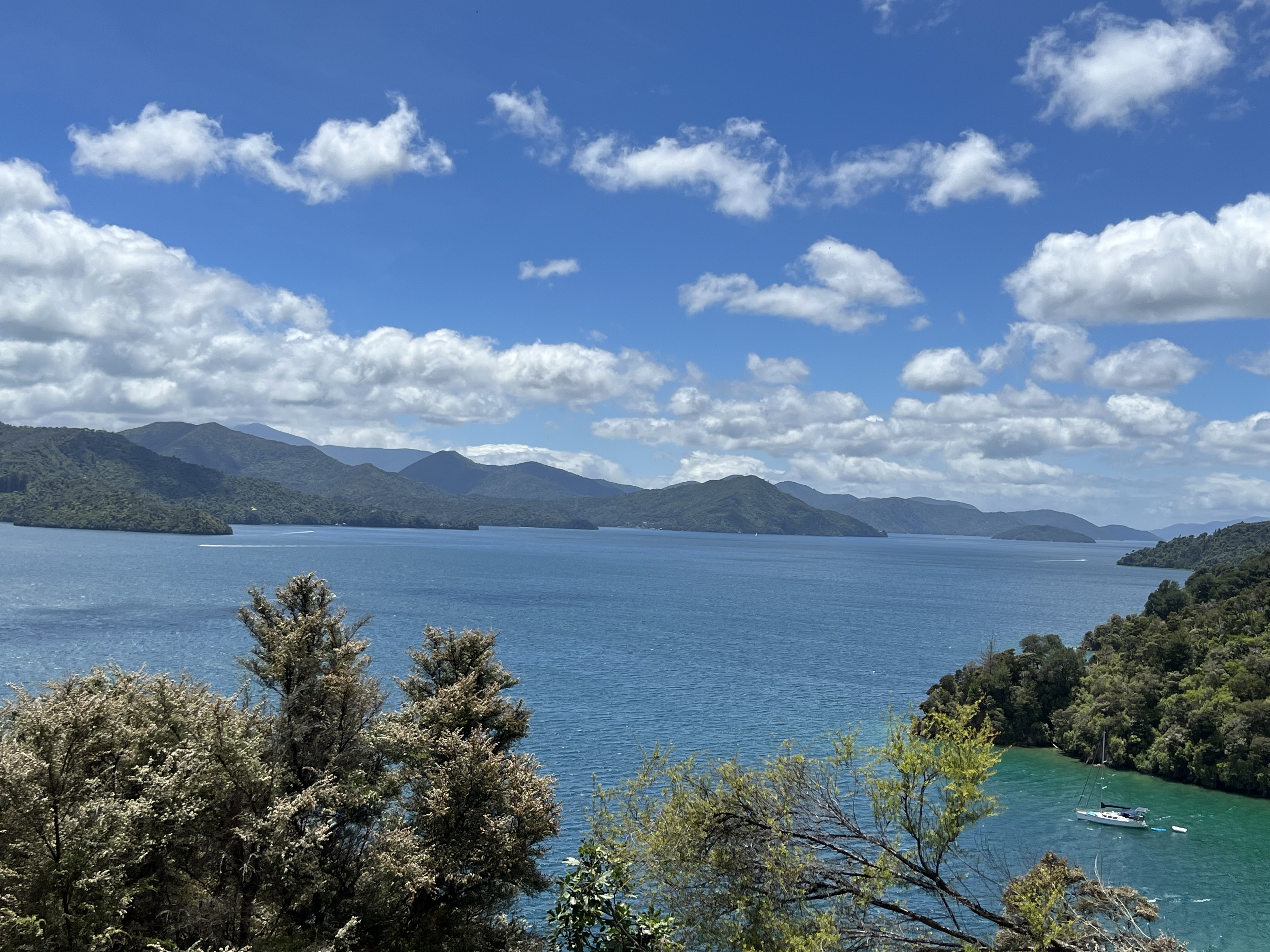 5. – 7. Januar: Jetzt sind wir schon (oder erst) seit zweieinhalb Tagen auf der Südinsel und es gibt schon wieder sooo viel zu erzählen… Nach der pünktlichen Ankunft unserer Fähre in Picton entscheiden wir uns für die Fahrt auf dem Queen Charlotte Drive bis Havelock. Die Strecke bietet zahlreiche fantastische Ausblicke auf die Marlborough Sounds, die Fjorde im Norden der Südinsel, ist aber auch eng und kurvenreich und das Vorankommen deshalb – und auch wegen der vielen schönen Aussichtspunkte – nicht besonders zeiteffizient. Der Reiseführer meint sogar, man benötige gerne mal einen halben Tag, um die Schönheit der 35 km langen Strecke wirklich zu geniessen. So viel Zeit haben wir nun doch nicht übrig, da wir schliesslich noch eine ganz schöne Strecke vor uns haben, trotzdem ist jeder Stopp, den wir machen, absolut lohnenswert. In Havelock, der selbsternannten Hauptstadt der Grünlippenmuscheln, haben wir Hunger, genehmigen uns aber statt der Meerestiere einen Hamburger aus einem hippen Streetfood-Wagen am Strassenrand. Und wir sind uns einig, selten haben wir einen so leckeren Burger gegessen – was für ein Genuss. Am späteren Nachmittag checken wir kurz vor dem Abel Tasman Nationalpark in unsere Lodge ein. Wir hatten wirklich schon viele schöne Unterkünfte, aber diese toppt mit ihrer Lage nun einfach alles. Zwar mitten im Nirgendwo gelegen, aber die Aussicht aus dem Bett gibt den Blick auf einen kleinen Teich frei, in welchem zahlreiche Enten plantschen, auf der angrenzenden Wiese tummeln sich zahlreiche Vögel und eine Horde Kaninchen hoppelt hin und her und querfeldein und bietet beste Unterhaltung. Auf der anderen Seite der Lodge schauen wir aufs Meer – was will man me(e)hr? Dafür hat in diesem Nest der Dorfladen bereits geschlossen – das ist hier allgemein auch in den Restaurants so, wenn sie das Gefühl haben, das Geschäft für den Tag sei beendet und da kommt eh keiner mehr, wird geschlossen, die Öffnungszeiten werden da nicht so strikt eingehalten. Wir finden aber noch einen Früchte- und Gemüseladen, deren Angestellter zwar etwas kurrlig rüberkommt, aber irgendwie haben wir das Gefühl, dass wir mit dem Einkauf auch noch etwas Nachbarschaftshilfe leisten. Damit wir die Zeit in unserer Lodge so richtig auskosten können, geniessen wir ein Picknick in unserem temporären Traumhaus, statt nochmals rauszugehen.
