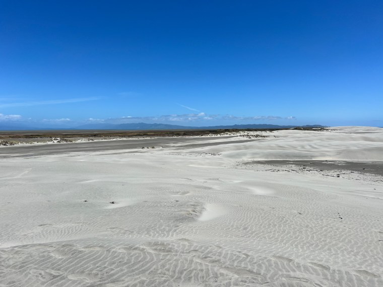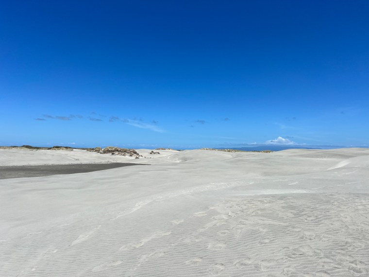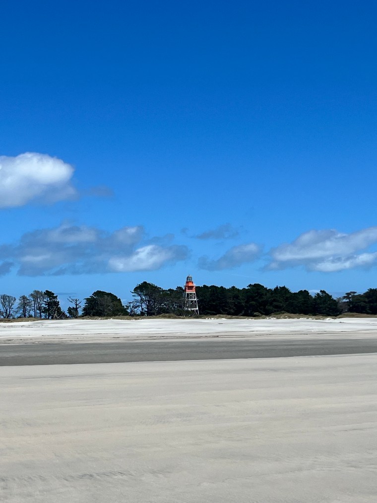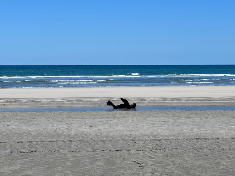 Für Sonntag hatten wir schon von zuhause eine Tour über die Landzunge am äussersten Zipfel – den Farewell Split – gebucht. Mit einem 4×4 Truck fahren wir in einer kleinen Reisegruppe und mit einer sehr unterhaltsamen gebürtigen Schwedin als Guide und Fahrerin mehrheitlich über den Beach die ca. 30 km bis zum Leuchtturm. Unterwegs sehen wir viele Vögel, sorry aber Vogelnamen auf englisch, die können wir uns noch immer nicht merken, aber sie waren schön und die Möwen (ja die kenne ich) riesig. Spannender fanden wir aber die Robben, die sich am Strand in der Sonne fläzten oder Yoga machten. Beim Besteigen einer der Dünen können wir erst sehen, wie unendlich weit sich das Meer bei Ebbe auf beiden Seiten zurückzieht, allerdings muss man dann auch aufpassen, rechtzeitig zurück zu fahren, weil sonst die ganze Angelegenheit im Meer endet und kein gutes Ende nimmt. Unser Tour-Anbieter hat erst einmal einen Truck im Sand eingegraben und nicht mehr vor dem Aufkommen der Flut befreien können. Bis zur nächsten Ebbe war das Fahrzeug in sieben Teile zerlegt… Wir sind aber rechtzeitig auf dem Rückweg und besuchen als Abschluss unserer Tour noch das Cape Farewell, den Punkt, wo James Cook damals Neuseeland verlassen hat – deshalb auch der Name. Für uns ist zum Glück noch lange kein Farewell in Sicht, schliesslich sind wir inzwischen so richtig im Ferien-Flow angekommen und haben noch gar kein Heimweh.