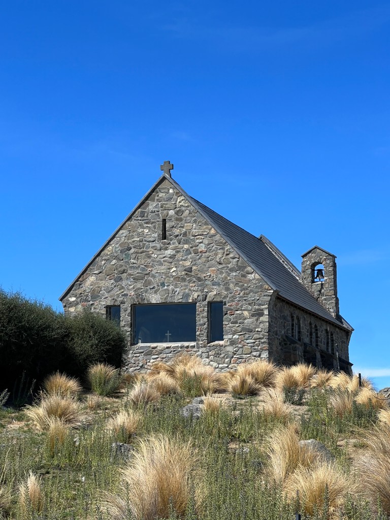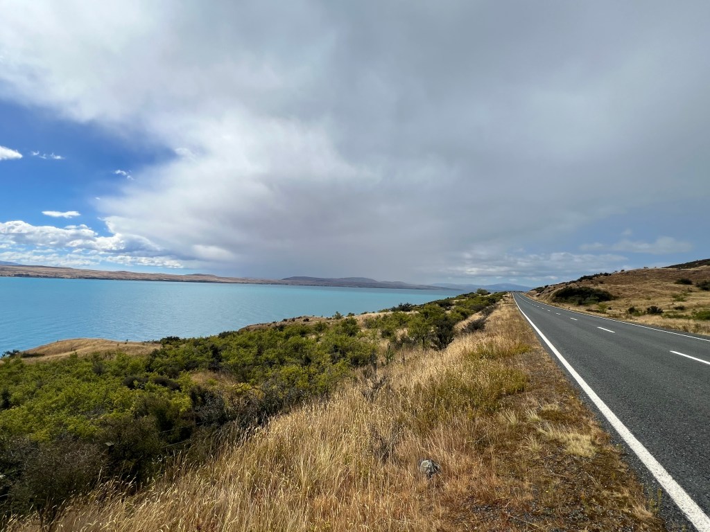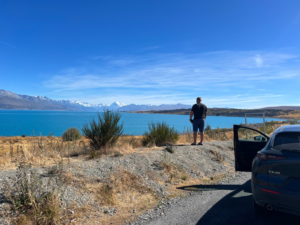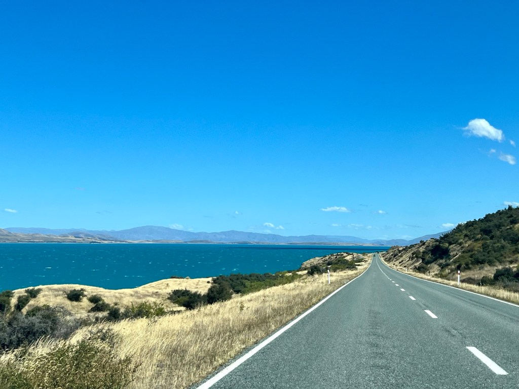 Um uns die Autofahrt etwas aufzuteilen, übernehme ich nochmals die erste Etappe der heutigen Strecke. Und ich bin ganz froh, habe ich mich für die erste Etappe entschieden – mehr dazu später… Erst mal geniessen wir nochmals den herrlichen Blick auf den Mt Cook und erreichen schon bald den Lake Tekapo, ein richtig schöner Bergsee, der uns einfach an Kanada erinnert. Natürlich machen wir da auch noch einen Stopp und bewundern die Aussicht aus dem Kirchenfenster der „Church of the Good Shepherd“. Definitiv haben wir noch nie eine Kirche an solch toller Lage mit einmaligem Blick aus dem grossen Kirchenfenster direkt auf den See gesehen. Wenn die sich nur nicht zu fest vom Beten ablenken lassen… Allein für diesen Blick lohnt sich der Besuch der Kirche, auch wenn hier das Fotografieren mal wieder nicht erlaubt ist… Und weil da so ein alter freundlicher Herr beim Eingang sitzt, getraut sich auch niemand, sich diesem Verbot zu widersetzen… Und dann folgt eine sehr lange Fahrt bis Christchurch. Am Anfang ist die Landschaft mit den gelben und trockenen Hügeln und Landschaften noch sehr faszinierend, irgendwann wird es aber eher langweilig und spätestens auf dem Highway 1 dann richtig öde. Immerhin haben wir bei einer kurzen Kaffeepause in Geraldine noch ein nettes Gespräch mit einem neuseeländischen Ehepaar, bevor wir unsere Fahrt fortsetzen und ich wieder meinen angestammten Platz auf dem Beifahrersitz einnehme und das pilotieren meinem Super Driver überlasse.