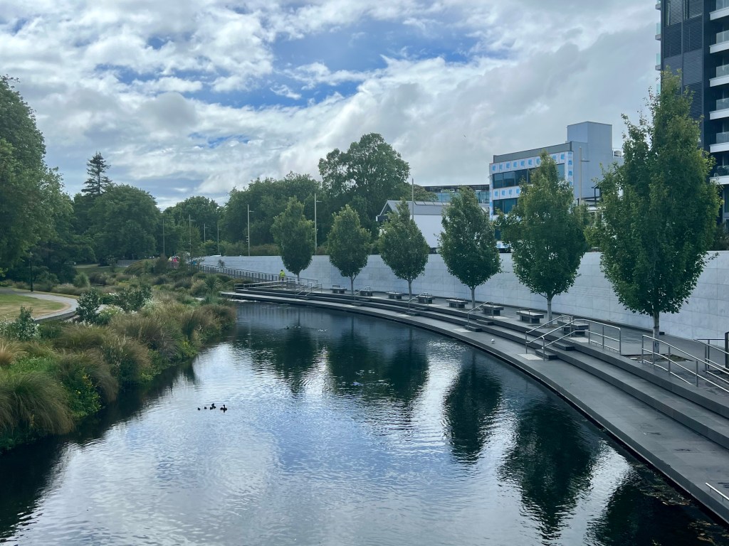 Am Dienstag besichtigen wir auf unserem Weg zum botanischen Garten das Arts Centre, eines der wunderschönen Gebäude, das inzwischen zu 95% restauriert ist. Eigentlich will sich Yvo nur einen Kaffee holen, was uns zu diesem wunderbaren Gebäude führt und Yvo kurzfristig zum Lead Guide macht. Der botanische Garten ist grosszügig und schön entlang des Flusses angelegt und perfekt für einen Spaziergang. Allerdings beginnt es während unseres Besuches zu regnen, was die ganze Angelegenheit etwas ungemütlich macht. Die Temperaturen sind fast 10 Grad tiefer als am Tag zuvor, dennoch sind wir den ganzen Tag irgendwo in der Stadt unterwegs und schaffen mehr als 10km – in FlipFlops! Wir schauen uns auch noch das Canterbury Earthquake National Memorial an, eine Wand, wo an die 185 Opfer des Erdbebens erinnert wird und die sich an wunderschöner Lage am Fluss befindet. Trotz des traurigen Ereignisses ein schöner Ort zum Innehalten. Danach bummeln wir durch den Riverside Market, einen grossen und attraktiven Food Market, der uns gleichzeitig eine Pause von Wind und (Niesel-)Regen genehmigt. Wir würden uns gerne durch alle Stände essen, aber so unterernährt sind wir leider nicht… Weil noch Zeit bleibt, steigen wir auch noch ins Touri-Tram in der Erwartung, bei der 50minütigen Bummelfahrt durch die Innenstadt auch noch ein paar interessante Infos zu erfahren. Womit wir wieder beim Thema Sprache sind. Wir verstehen den Fahrer (=Guide) zu etwa 30 Prozent, was die Informationen einigermassen nutzlos macht. Du verstehst eine Zahl, hast aber keine Ahnung, in welchem Zusammenhang diese erwähnt wurde. Aber ist ja ein hopp-on hopp-off Konzept. Also kurz mal „hopp-off“ gemacht, ins nächste Tram gestiegen und siehe da, auch die Schweizer verstehen plötzlich die Infos und grösstenteils sogar die Witze. Zum Beispiel über die Gebäude, um die der Abriss nicht so schade ist, da sich eine Zahnarztpraxis drin befunden hatte… 😳 Und nach einer kurzen Pause in unserem B&B, die wir allerdings zum Wäsche zusammenlegen und Packen nutzen, treffen wir uns nochmals in der Stadt zum Abendessen mit Eveline (meiner ehemaligen Arbeitskollegin, mit der ich bis heute einen schönen Kontakt pflege), ihrem Mann Reto und dem herzigen vierjährigen Andri. Per Zufall haben unsere Reisepläne perfekt zusammengepasst und uns dieses Treffen „far from home“ ermöglicht. Sie haben soeben ihren Camper in Christchurch übernommen und werden noch bis Ende März Neuseeland erkunden. Mann, sind wir neidisch, gönnen es ihnen aber von Herzen.