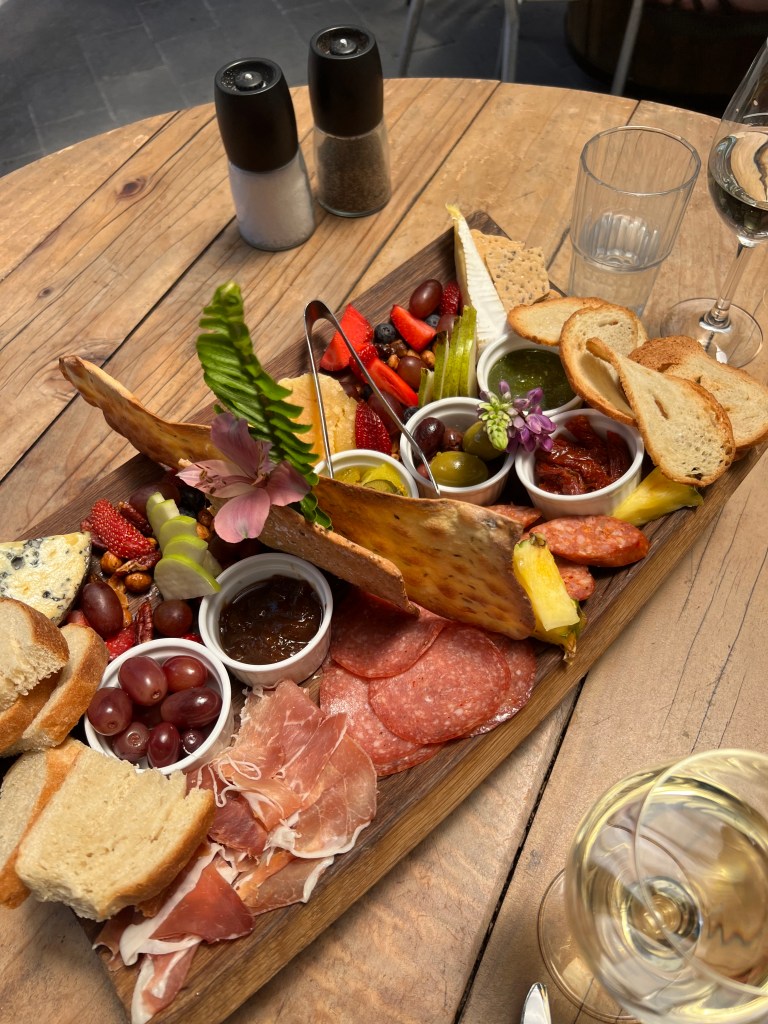 Ohne Hangover starten wir denn auch in den ersten Tag des neuen Jahres, der uns mit prächtigem Sonnenschein und sommerlichen Temperaturen erwartet. Und wir haben das perfekte Programm dazu: eine Cape Winery Cycle Tour. Wir kriegen sogar ganz unverhofft zwei bequeme und gut gewartete E-Bikes, worüber wir insbesondere in der Küstenregion mit Gegenwind noch ganz froh sein werden. So cruisen wir also „mit Vollgas“ ins neue Jahr, gönnen uns hier und da auf einem Weingut mal ein Gläschen oder zwei, mampfen wie es sich gehört unterwegs ein feines Plättli, damit das Wanken auf dem Velo nicht ausartet und pedalen über gut ausgebaute Radwege durch die fantastische Küstenlandschaft in der Region des Cape Kidnappers.